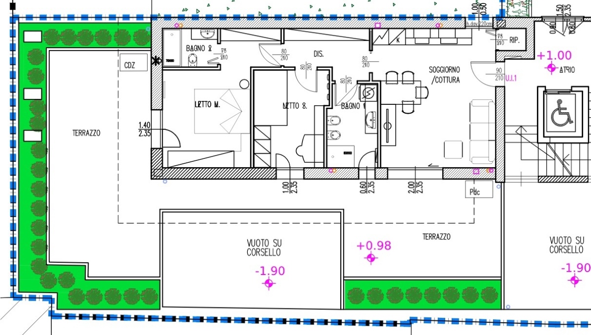 All’interno di questa nuova costruzione proponiamo in vendita un elegante trilocale con un ampio terrazzo di 85 mq, perfetto per chi desidera coniugare comfort, design e spazi all’aperto.