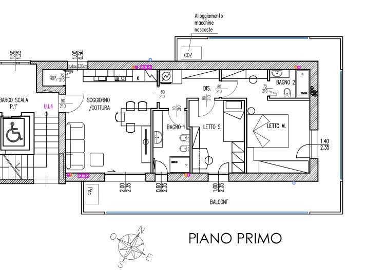 All’interno di questa nuova costruzione proponiamo in vendita uno splendido trilocale con ampia balconata e doppi servizi, situato al primo piano.